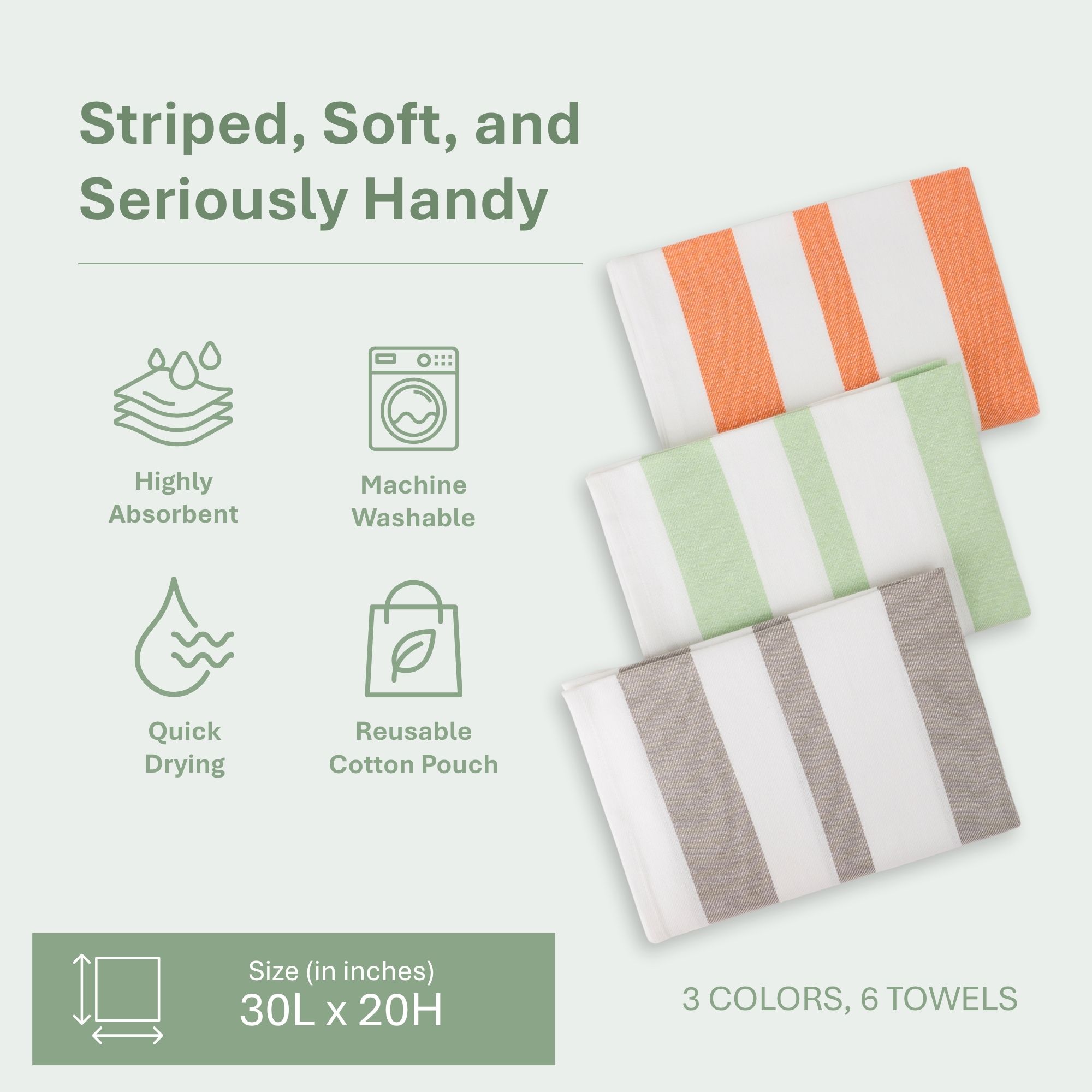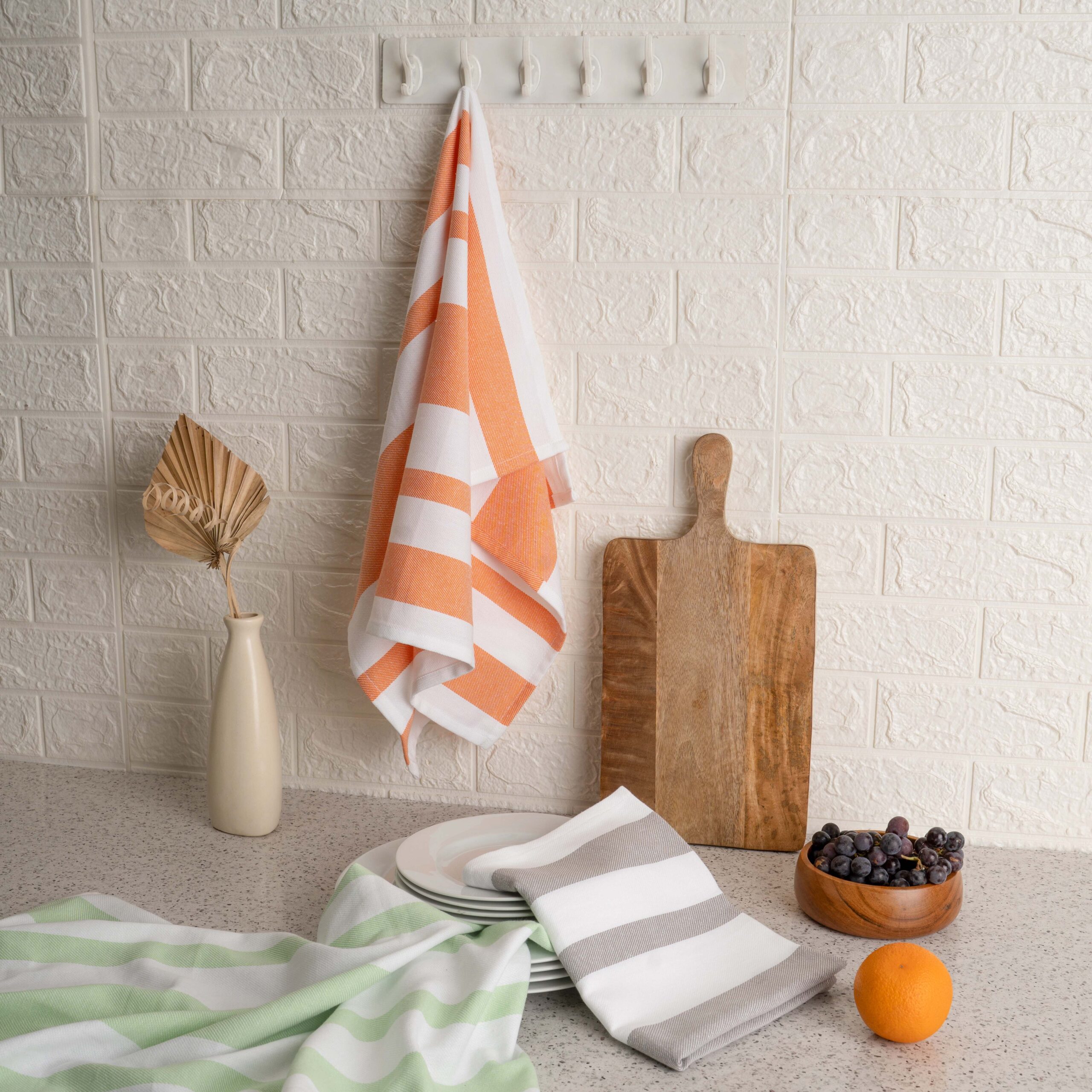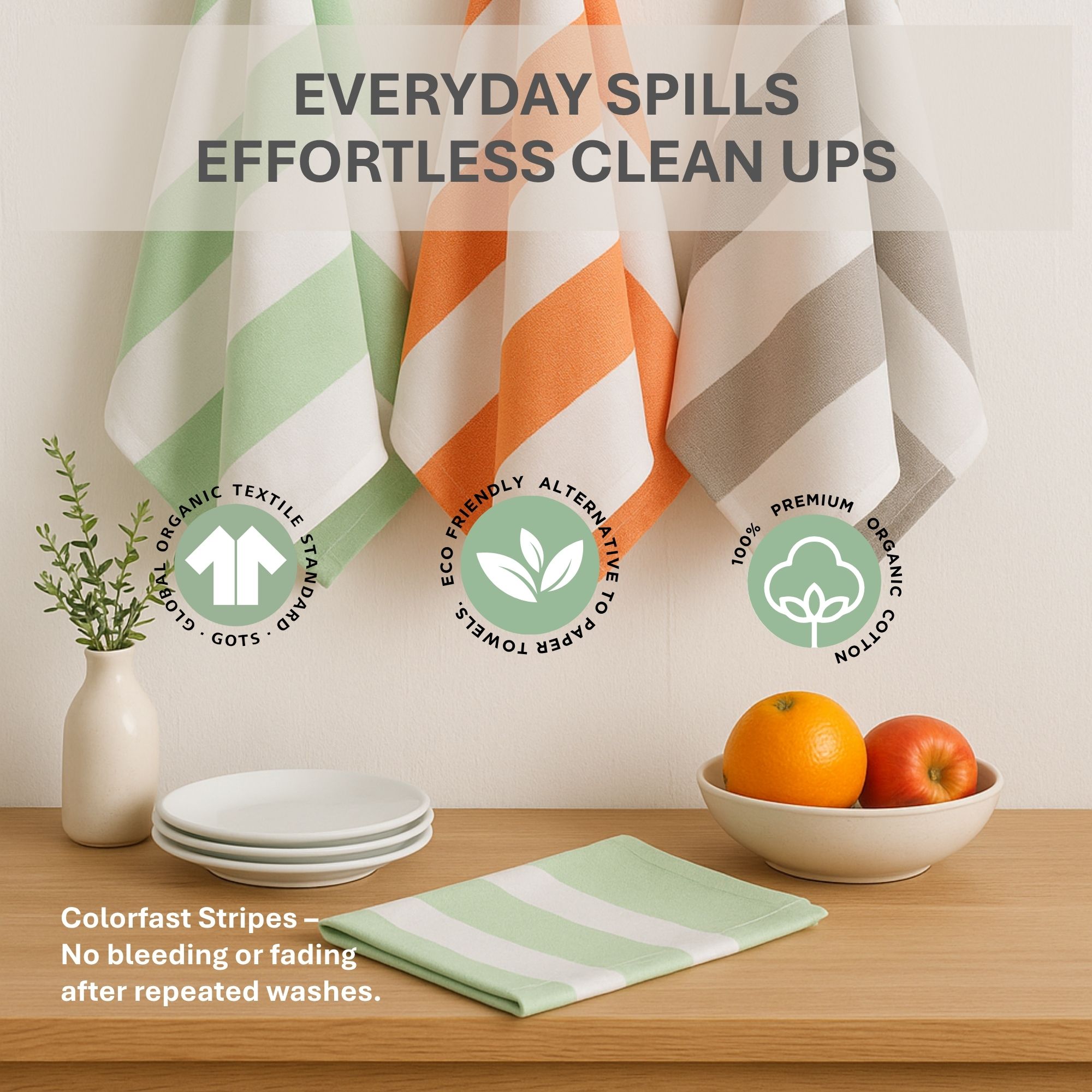 Organic Cotton Dish and Hand Kitchen Towels in Striped Design
